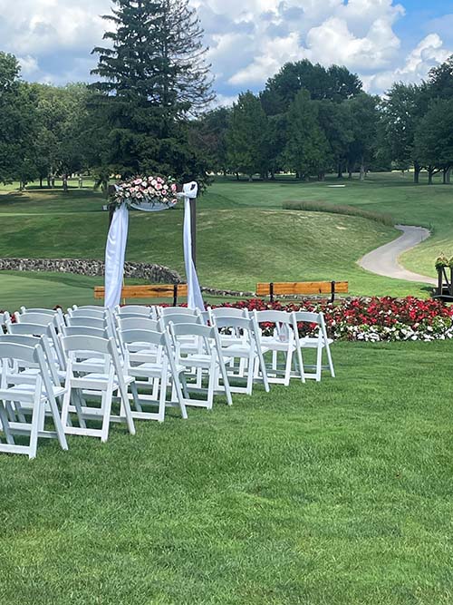 Orchard Park Country Club serves as the perfect backdrop for a beautiful wedding celebration. Our Ballroom and Porch overlook the rolling greens of the course and while traditionally designed, the Ballroom accompanies a wide variety of decorations. The perfect ceremony location awaits at the white gazebo, or behind #18 green, both abound with gorgeous views. We welcome you to schedule a tour and see all that we have to offer here at Orchard Park Country Club!